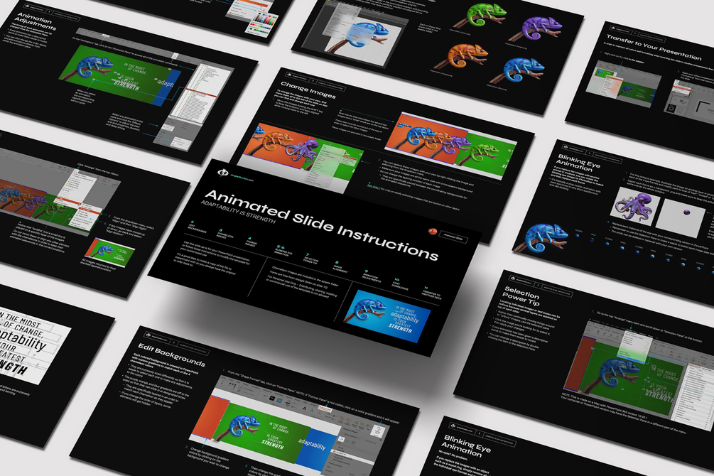 Capture attention and leave a lasting impression with this beautifully animated quote slide designed to inspire. Featuring smooth PowerPoint animations and a striking chameleon visuals, this slide brings your presentation to life—no GIFs or plugins required!